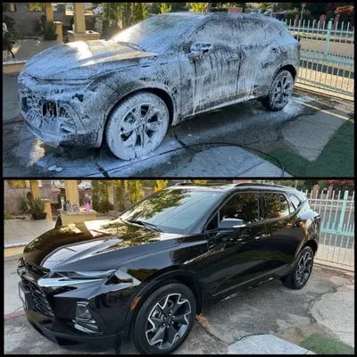 Hand Wash and Exterior Care is a careful, scratch-safe wash with a foam pre-soak, hand wash, wheel and tire cleaning, bug and grime removal, gentle drying, tire shine, and a finishing spray sealant for a glossy, protected look.